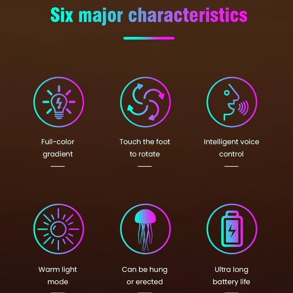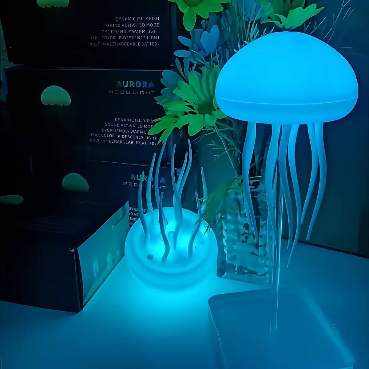 Voice-Controlled Jellyfish Ambient Light - USB Rechargeable, Color-Changing LED Night Light with Dynamic Lighting Effects, Wall-Mounted Decorative Lamp for Guest Room & Home Decor, Jellyfish Decor